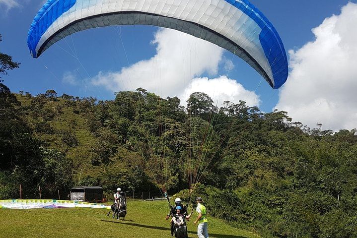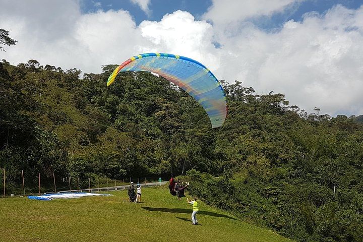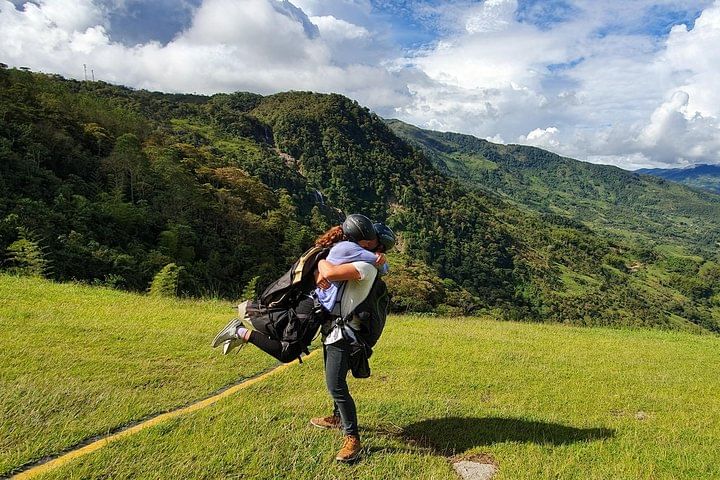 Live the most amazing paragliding flight near to the city of Medellin. Let´s drive 1 hour and 10 minutes until Cocorna municipality where flying zone is. Fly 10-15 minutes and enjoy the view of giant waterfalls. At our return to Medellin, we will stop in a restaurant in the top of the mountains for lunch (no included) where you can enjoy the best traditional food and the 360 degree view of the mountains of Antioquia.