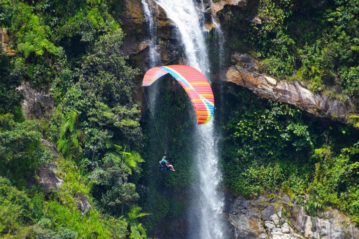PARAGLIDING over giant waterfalls private tour (optional Guatape) from Medellin